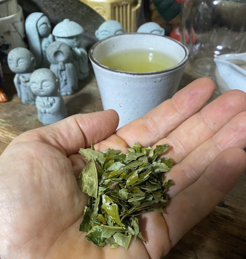 Сварил листья тэнча, то есть сырье для перетирания в матча, по-фермерски, в большом чайнике. Вкус и аромат — на высшем уровне. Питкость зашкаливает.