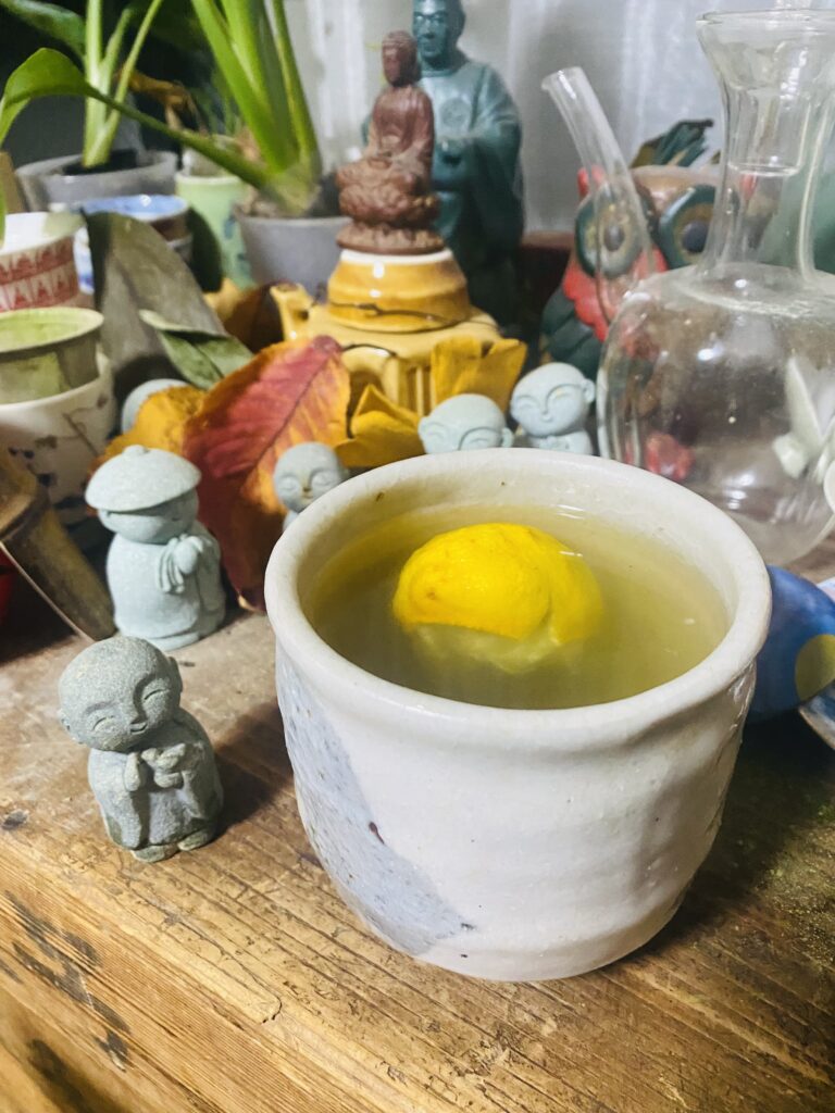 В кружку с горячим как моё сердце горным банча бросил увесистую дольку цитрусового юдзу и попал в точку!