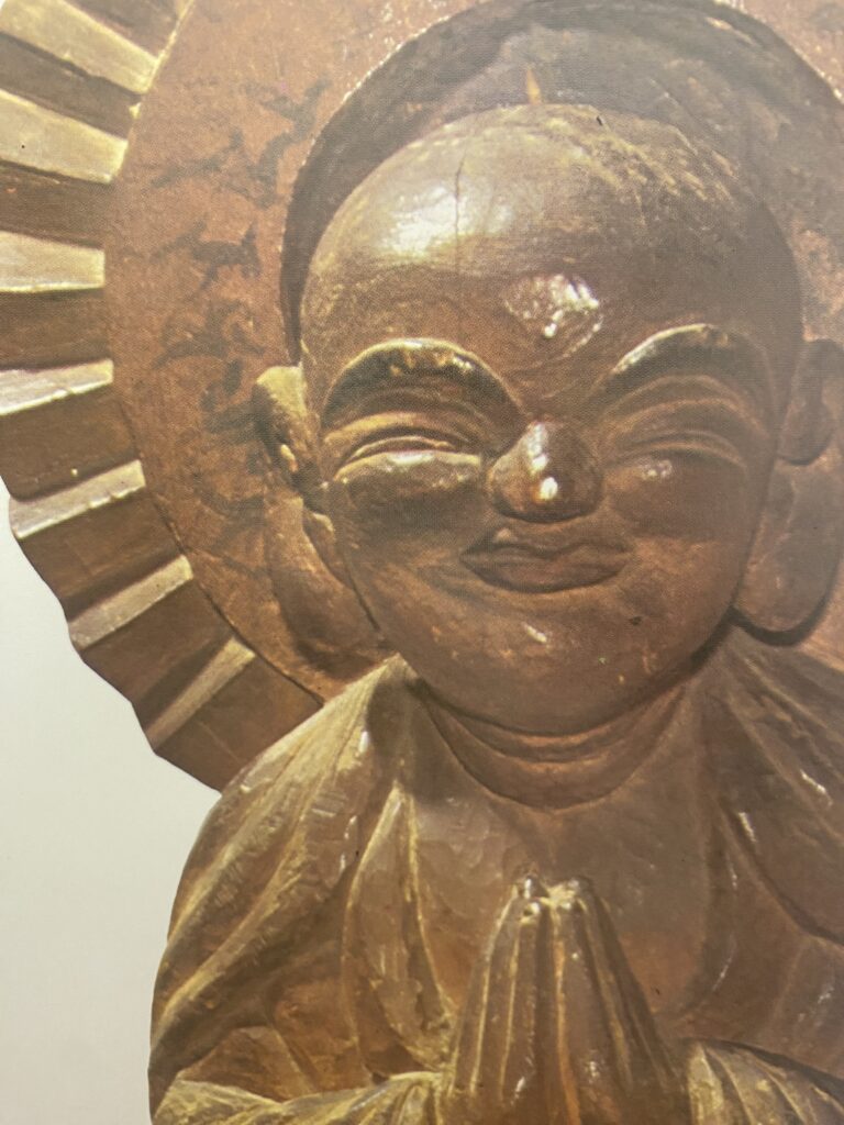 Большинство его статуй, особенно созданные ближе к концу жизни — улыбаются, что находится в сильном контрасте с серьезными, холодными лицами будд официального, храмового буддизма.