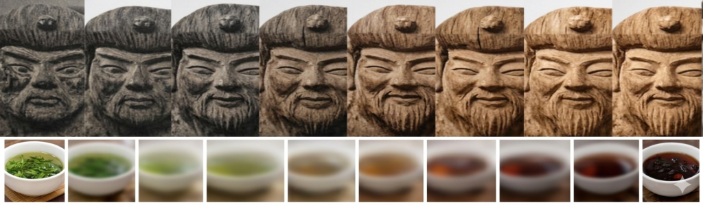 Похожим образом можно рассматривать и чайную культуру. Большинство чайных учебников показывает её как набор фиксированных категорий: синча, сенча, банча, гёкуро, матча. Однако такой каталог фиксирует лишь отдельные точки. Между ними остаётся скрытым пространство переходов.